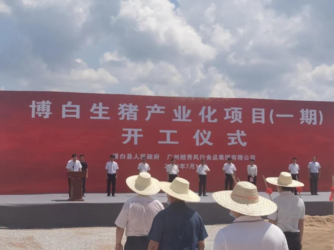 7月16日,越秀风行食品集团与广西博白县政府在广西玉林博白县举行博白生猪产业化项目(一期)开工仪式,广西玉林市政协副主席徐建伟、博白县委副书记周印章、越秀风行食品集团副总经理申志明、越秀风行农牧副总经理姚志伟等出席开工仪式。这是越秀风行食品集团在广西的首个项目。