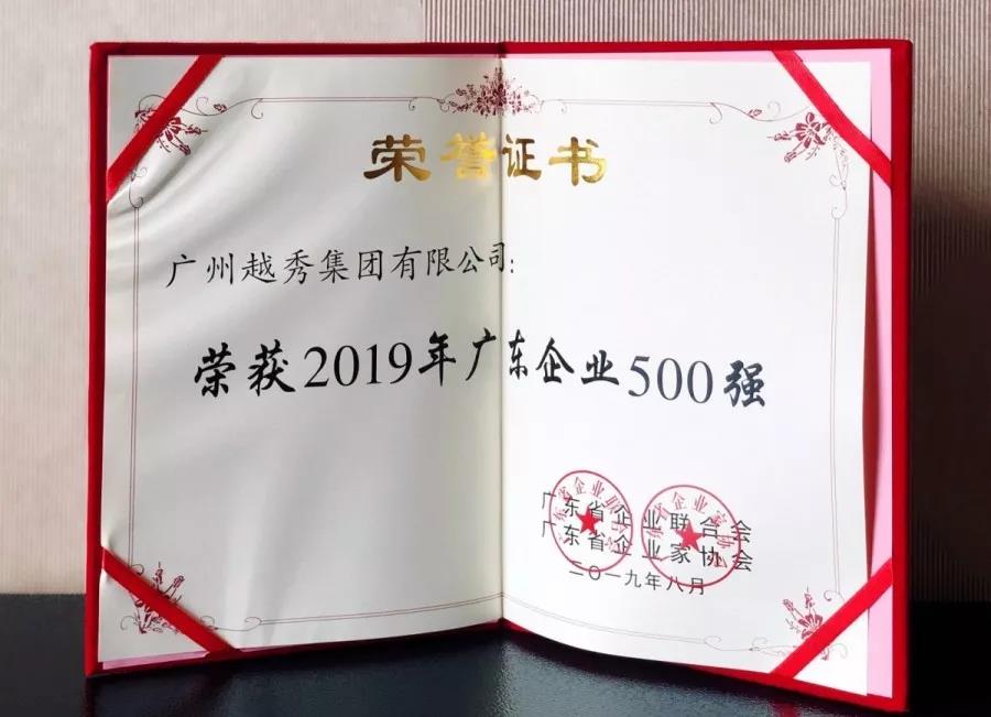 Top 500 Guangdong Enterprise Honorary Certificate