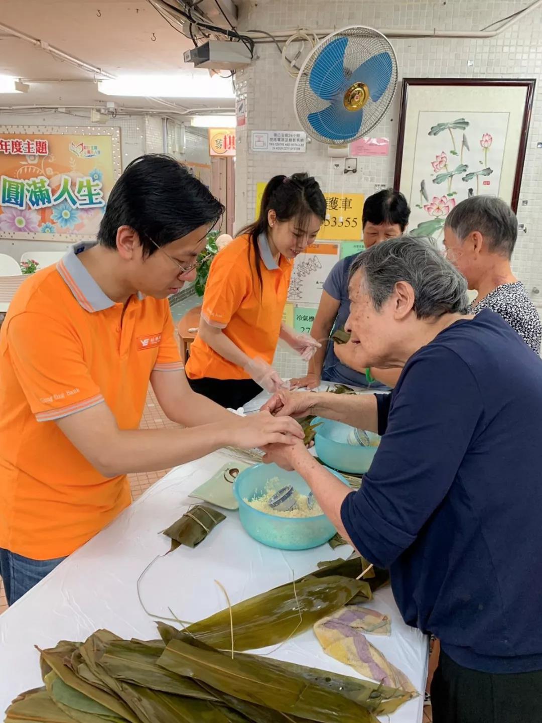Chong Hing Bank recently cooperated with Helping Hand and co-organized the Dragon Boat Festival “Dumpling” with Love visits. About 20 employees participated in visiting the elders, made sticky rice dumpling (zongzi) with them, and celebrated the Dragon Boat Festival together.