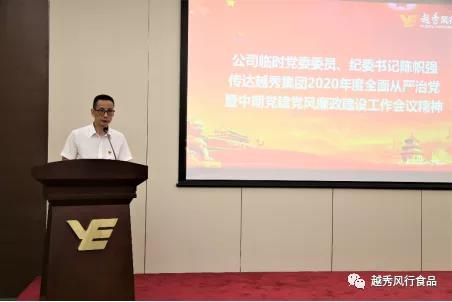 越秀风行食品临时党委委员、纪委书记陈帜强传达了越秀集团2020年度全面从严治党暨中期党建党风廉政建设工作会议的相关精神。