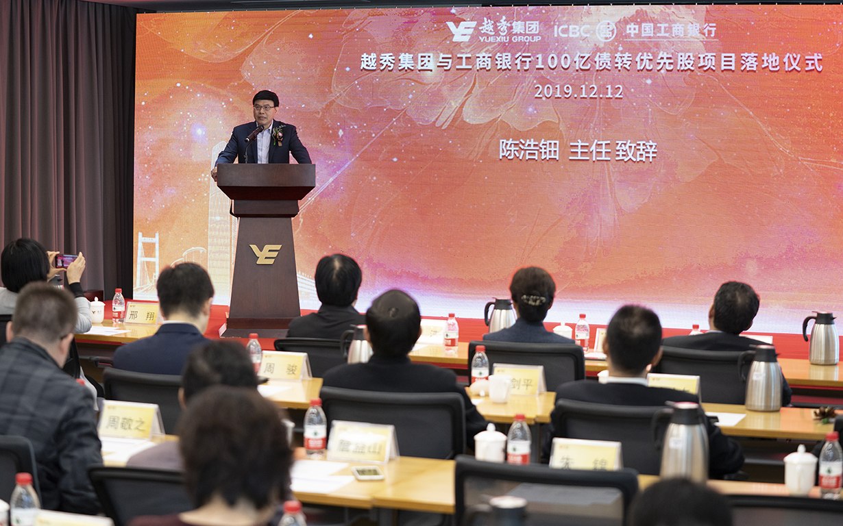 On December 12, Launching Ceremony of Yuexiu Group and Industrial and Commercial Bank of China (ICBC) Debt to Preferred Stock Project was held in Guangzhou International Financial Center (IFC). Hu Hao, Vice President of ICBC head office, Xing Xiang, Deputy Secretary General of Guangzhou Municipal People's government, Chen Haodian, Director of Guangzhou State-owned Assets Supervision and Administration Commission (Guangzhou SASAC), Chen Ping, Deputy Inspector of Guangzhou Local Financial Supervision and Administration Bureau, Zhang Zhenghua, President of ICBC Financial Assets Investment Co., Ltd., Zhang Zhaoxing, Chairman of Board of Directors of Yuexiu Group, and other officials and guests attended the ceremony. This not only marks the official implementation of Yuexiu Group's RMB 10 billion debt-to-preferred-stock plan, but also the first approved non-listed non-public joint stock company debt-to-preferred-stock project in China, which will become a vivid model of China's capital market and state-owned enterprise reform, so as to promote the development of the group's main business to achieve complementary resources and advantages. More than 150 leaders from Guangzhou Development and Reform Commission, Guangzhou Finance Bureau, Guangzhou Market Supervision Bureau, Guangzhou Local Financial Supervision Bureau, ICBC and members of Yuexiu Group leadership team attended the ceremony.